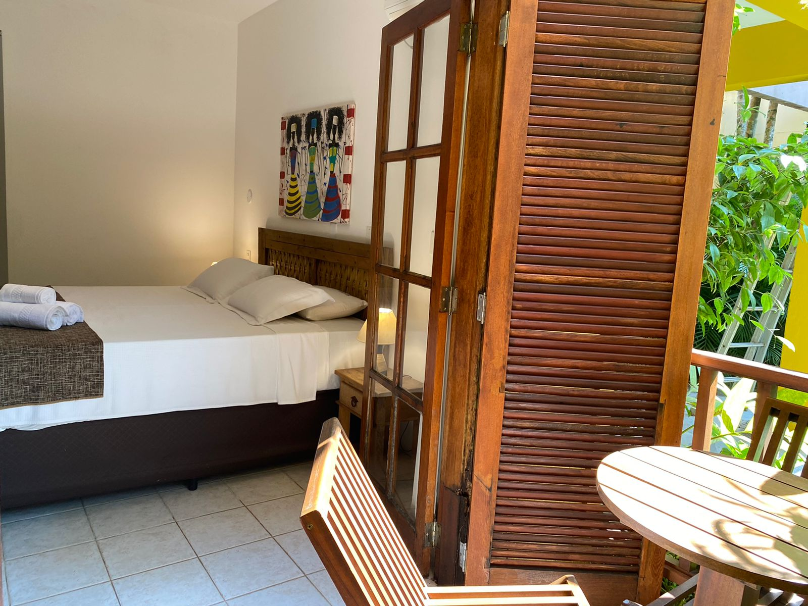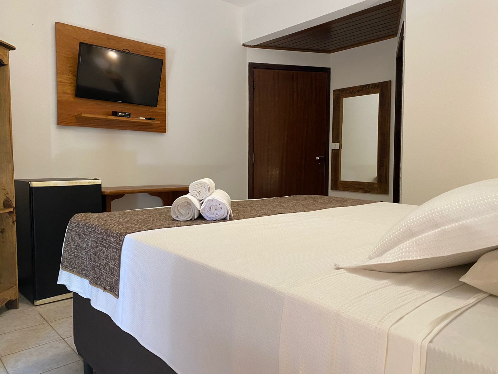 Dispõe de ar-condicionado split, tv LCD 32" com Sky, frigobar, cama Queen size, varanda e chuveiro com aquecimento a gás. No banheiro há barras de apoio para idosos e pessoas com necessidades especiais e cortina no lugar do Box.